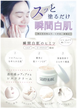 瞬間白肌のヒミツ。シルク+ピーチセラミド配合