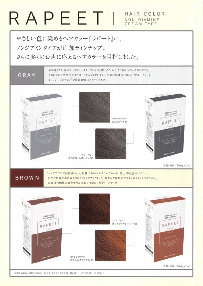 やさしい色に染めるヘアカラー『ラピート』に、ノンジアミンタイプが追加ラインナップ。